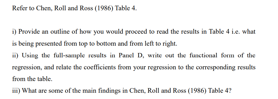 Solved Refer To Chen Roll And Ross 1986 Table 4 I Chegg Com
